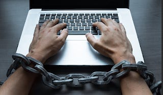 A “reverse centaur” is a machine head on a human body, “a person who is serving as a squishy meat appendage for an uncaring machine.” Here’s his example, in all its painful clarity: